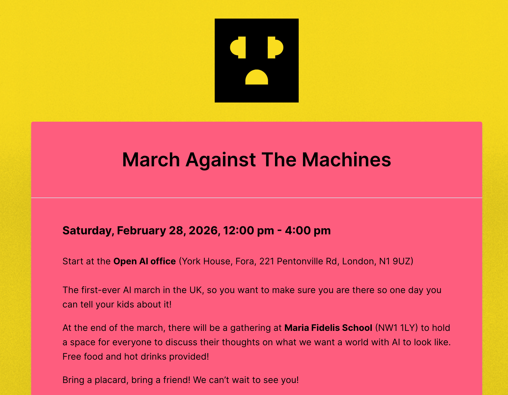 In London, this Saturday, February 28th, you can join the March Against the Machines, organized by Pull the Plug.