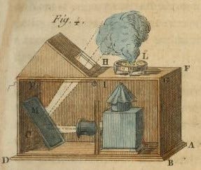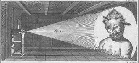 And that, it turns out, is an uncanny echo of the original smoke and mirrors phenomenon from which that politics journo cribbed the term. The phrase describes the then-high tech magic lanterns in the 17th and 18th centuries and the illusionists and charlatans who exploited them to convince an excitable and paying public that they could command great powers — including the ability illuminate demons and monsters or raise the spirits of the dead — while tapping into widespread anxieties about too-fast progress in turbulent times. I didn’t set out to write a whole thing about the origin of the smoke and mirrors and its relevance to Our Modern Moment, but, well, sometimes the right rabbit hole finds you at the right time.