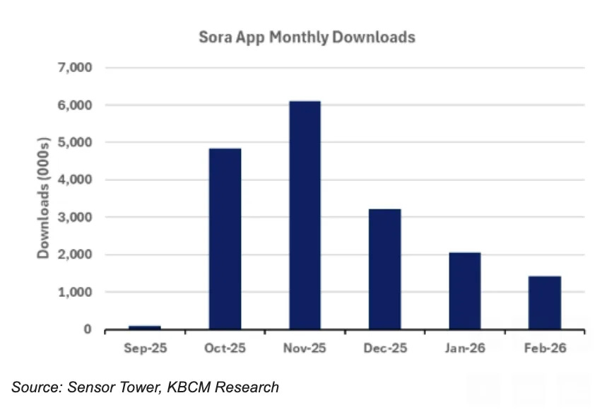 After peaking at 6 million monthly downloads in November, Sora fell to around a million and a half last month.