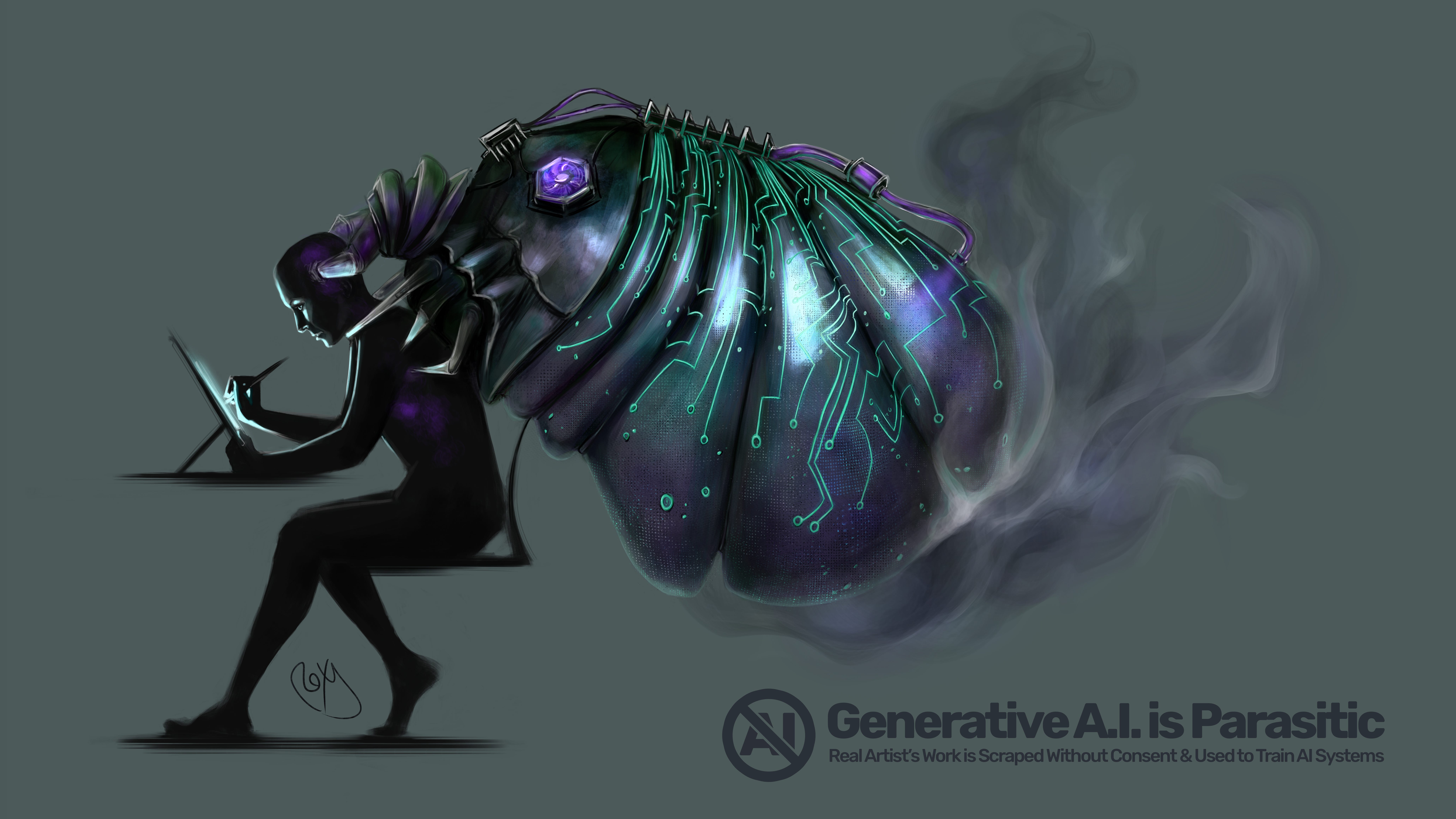 When AI first came on the scene, I was approached by a potential client that was self-funding a mobile game and wanted to commission me to create in-game art. He asked what my standard rate was and then offered to double it if I allowed him to pay in etherium (which I knew nothing about at that point.) I immediately had some concerns, but I'm a struggling artist so I took the gig anyway and crossed my fingers. He then introduced me to generative AI and encouraged me to use it to create game content quickly. At first I was interested in the possibility of using it to reduce my workload by maybe generating simple elements I get tired of painting—like grasses or leaves—but he instructed me to start plugging in the names of living artists to generate entire artworks in their style and the first time I did it I realized how horrifyingly wrong this actually was. After that I resisted and tried to use my own art. He grew frustrated with me pretty quickly and I left the company after less than 2 weeks (I was never paid; he owes/owed me about $1300).`