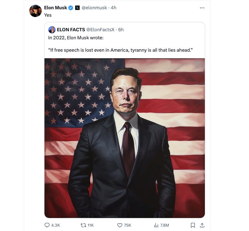 Plenty has been written about Elon Musk’s all-in turn for Trump, the war chest he’s bequeathed the Trump campaign, the cynical stunts from his SuperPAC, and the very probably illegal register-to-vote-to-win schemes he’s orchestrated in swing states. How the richest man in the world who once bemoaned the politicization of the platform has turned it, enthusiastically, into a propaganda machine on behalf of Donald Trump. Here’s