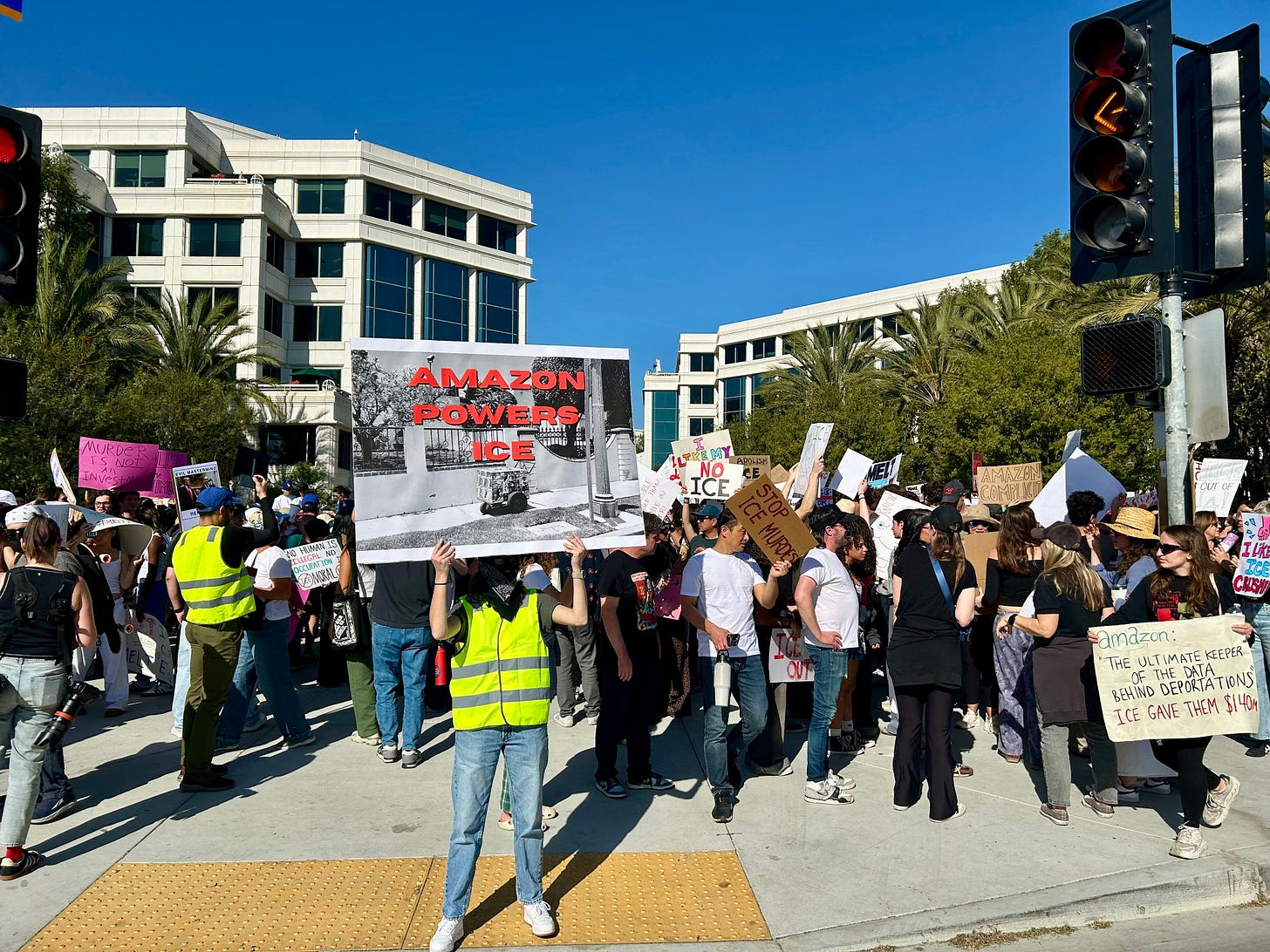 All that’s standing in the way, as in Minneapolis, are peers; ordinary citizens, neighbors, and coworkers. Which brings me back to the hundreds of people—high school students, Santa Monica moms, DSA members, tech workers, and everyone else—who turned up at the ICE OUT AMAZON protest last week.