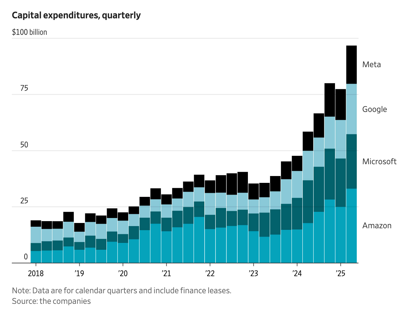 I’ll just repeat that. Over the last six months, capital expenditures on AI—counting just information processing equipment and software, by the way—added more to the growth of the US economy than all consumer spending combined. You can just pull any of those quotes out—spending on IT for AI is so big it might be making up for economic losses from the tariffs, serving as a private sector stimulus program.