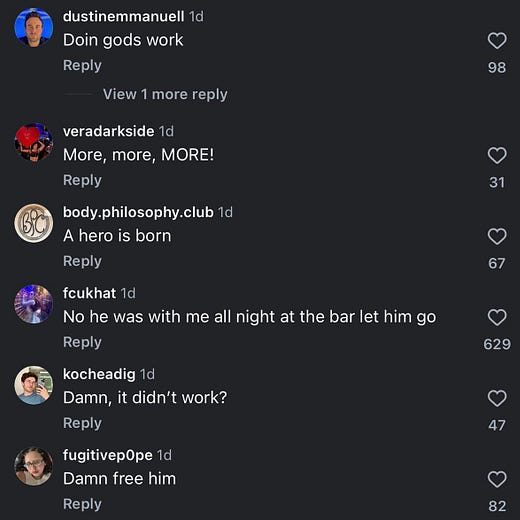 When news broke that the FBI had raided Moreno-Gama’s house in Texas, here’s how the development was received on Facebook, on the first post I clicked:
